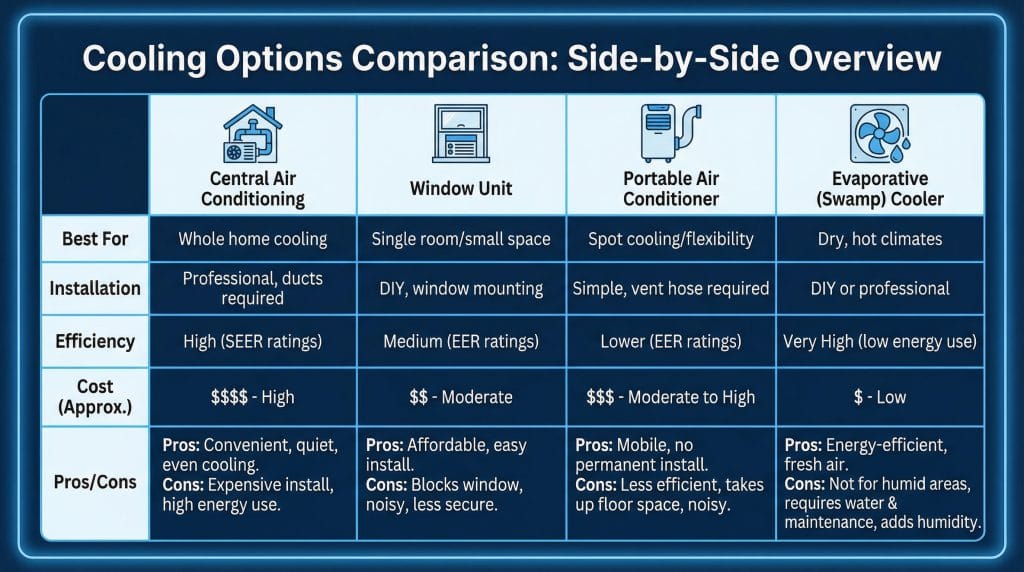 | Actual cooling effect | ✅ Yes | ❌ Moves hot air | ✅ Yes | ✅ Yes |